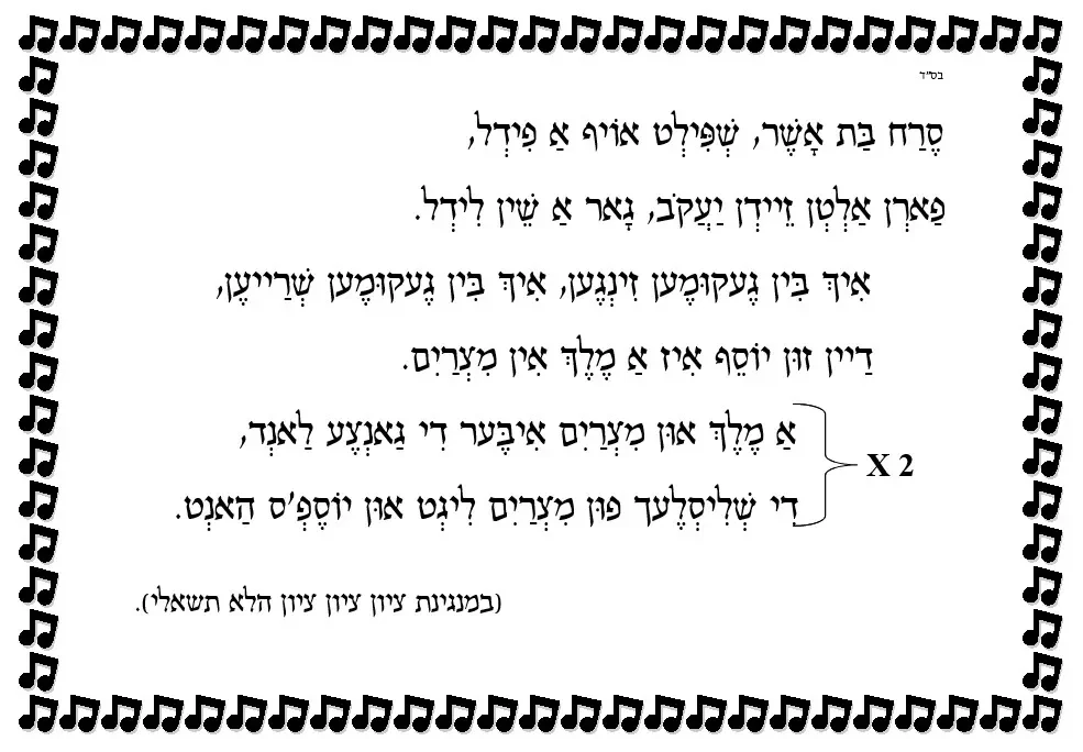 א ליד [שיר] אין אידיש – שרח בת אשר – ויגש