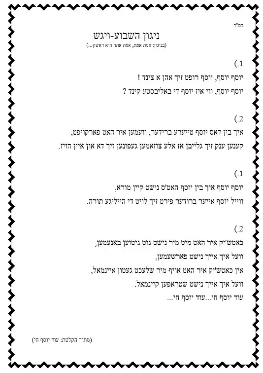 א ליד [שיר] אין אידיש – עוד יוסף חי – ויגש