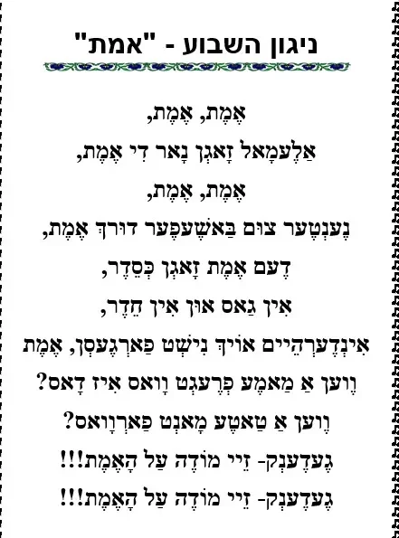 א ליד [שיר] אין אידיש – על פרשת משפטים – אמת