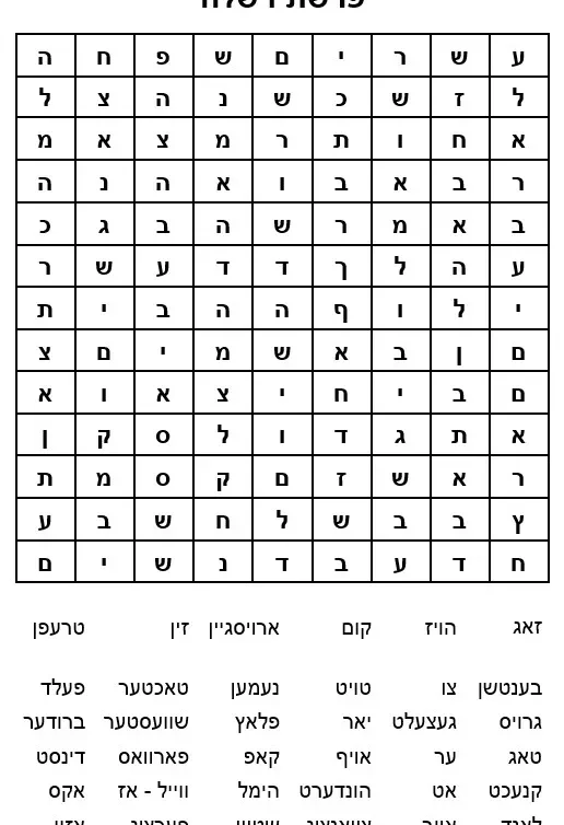 דף חידון – תפזורת – וישלח – מילים באידיש