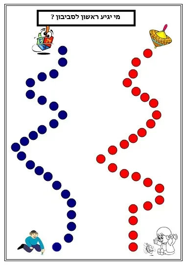 דף משחק – מי יגיע ראשון לסביבון – חנוכה