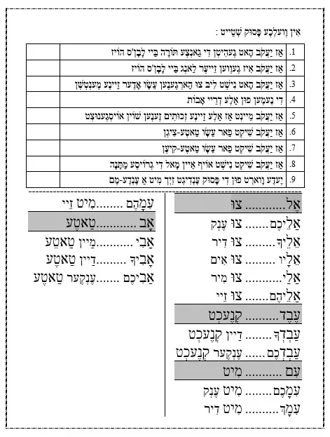 דף עבודה הבנה – אִין וֶועלְכֶע פָּסוּק שְׁטֵייט – וישלח