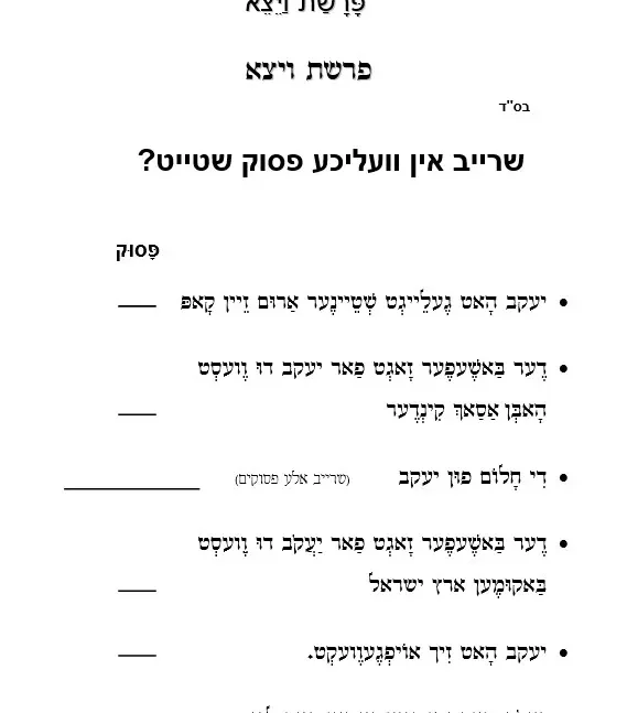 דף עבודה הבנה – אין וועלכע פסוק שטייט – ויצא