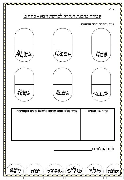 דף עבודה הבנה – דבר והפכו – ויצא