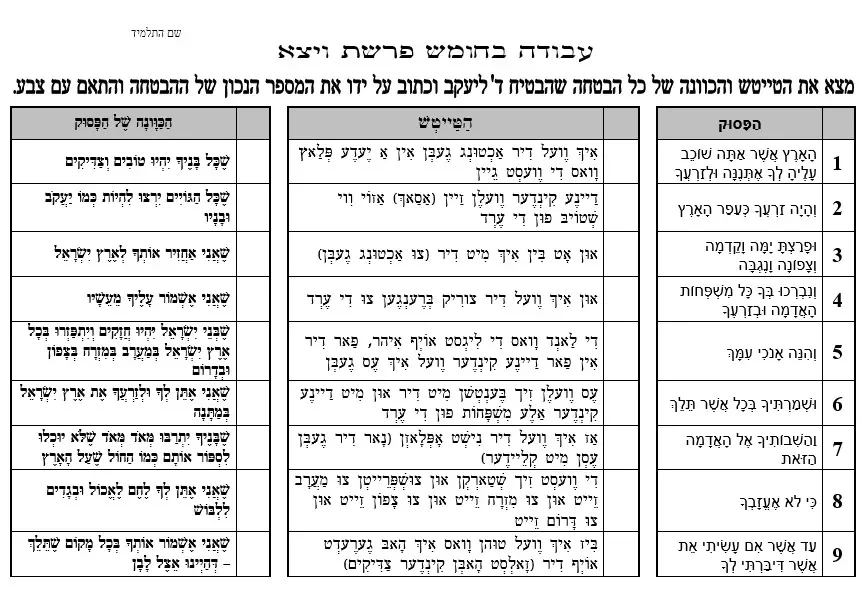 דף עבודה הבנה – הבטחת יעקב – ויצא