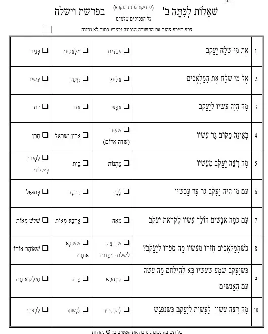 דף עבודה הבנה – הבנת הנקרא – כיתה ב – וישלח