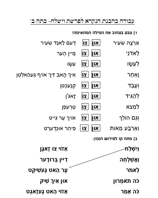 דף עבודה הבנה – הבנת הנקרא – כיתה ב – וישלח