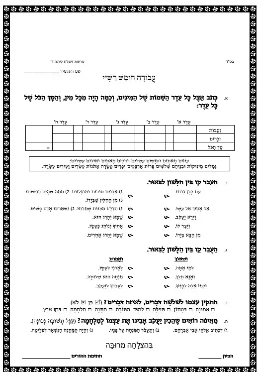דף עבודה הבנה – הבנת הנקרא – כיתה ד – וישלח