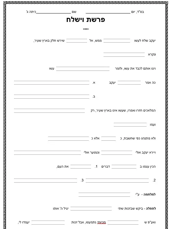 דף עבודה הבנה – הבנת הנקרא – עד רביעי – וישלח
