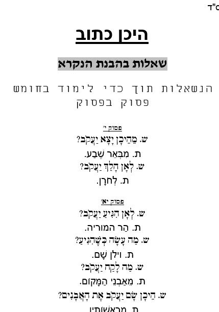 דף עבודה הבנה – היכן כתוב – ויצא