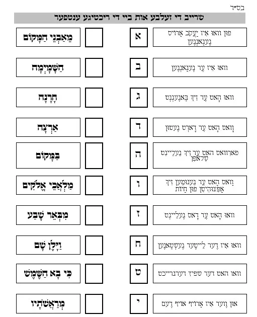 דף עבודה הבנה – חוברת מהרב טעסלער – ויצא