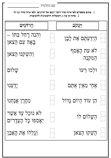 דף עבודה – הבנה – יעקב והרועים