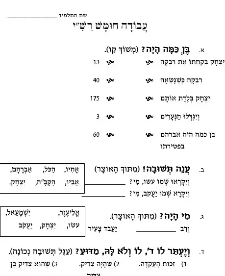 דף עבודה (הבנה) – כיתה ד – בעלז