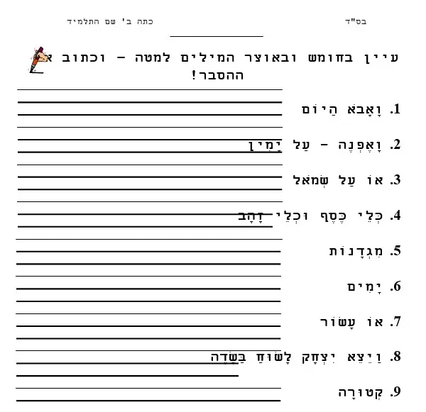 דף עבודה – הבנה – כתוב את ההסבר פרשת חיי שרה