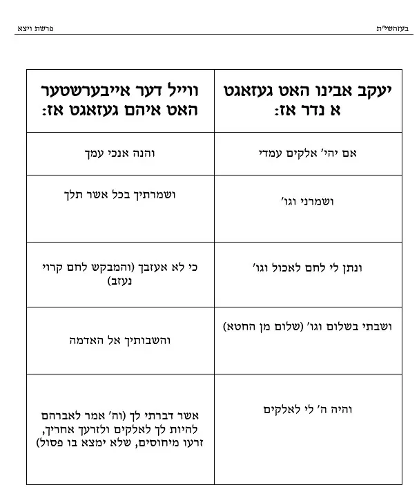 דף עבודה הבנה – נדר והבטחת יעקב – ויצא