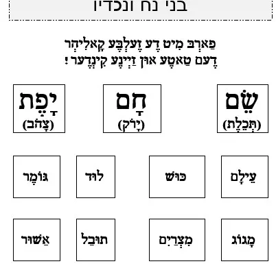 דף עבודה הבנה נח – פרק יא בני נח ונכדיו