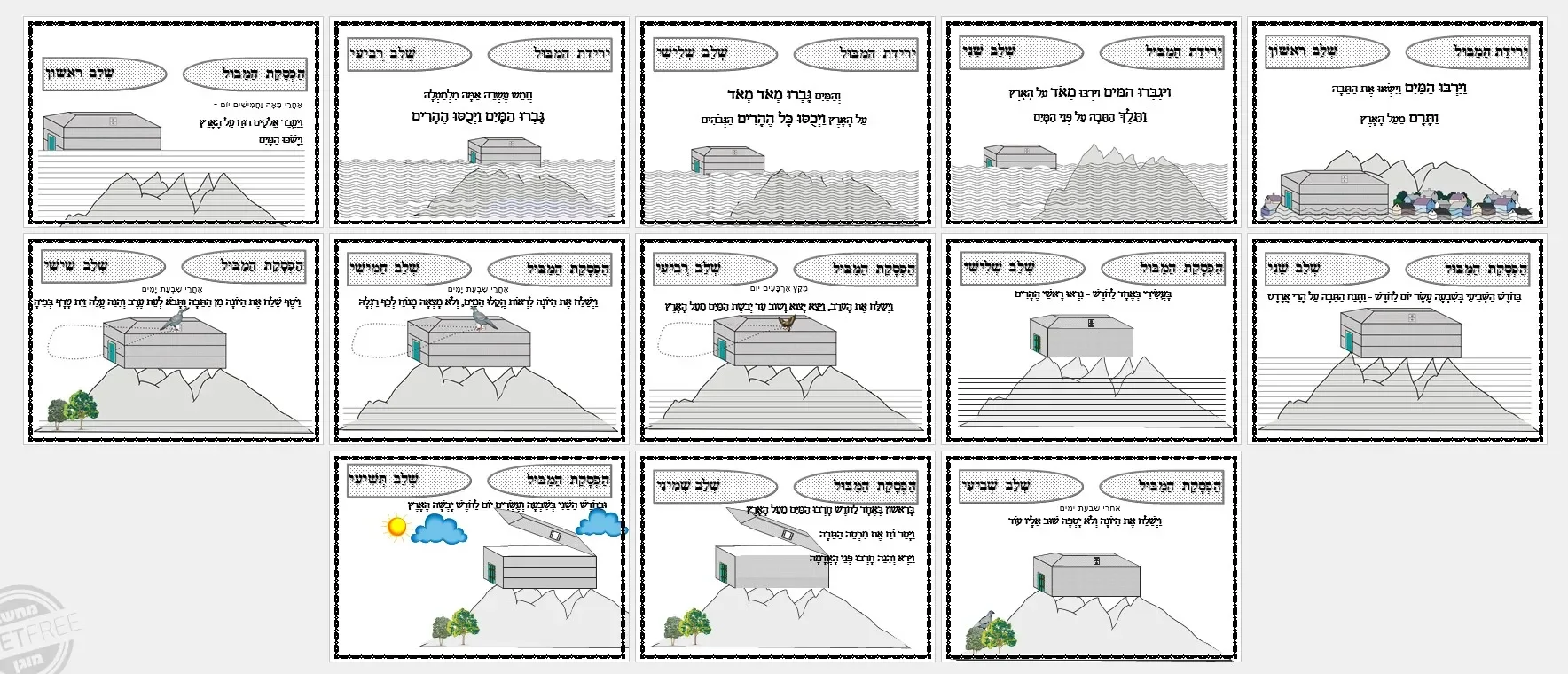 פרשת נח – דף הסבר – שלבי המבול ציורים