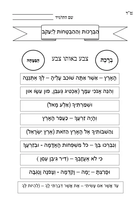 דף עבודה – הברכות והבטחות ליעקב