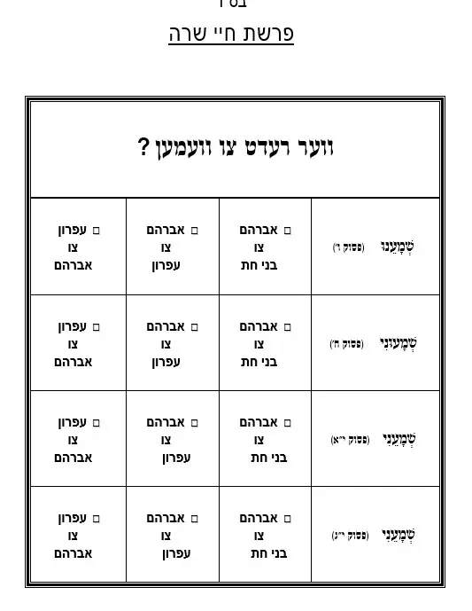 דף עבודה – חיי שרה – מי אמר למי – אידיש
