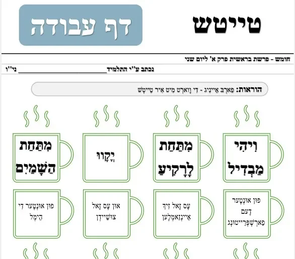 דף עבודה – טייטש – ליום שני מששת ימי בראשית