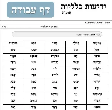 דף עבודה – ידיעות כלליות – 70 אומות – לזכור בעל פה
