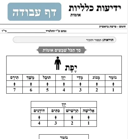 דף עבודה – ידיעות כלליות – שירים – על 70 אומות