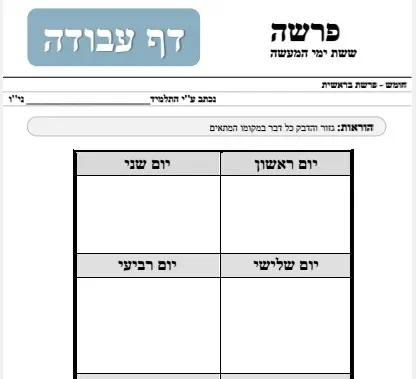 דף עבודה – לגיל הרך – בריאת העולם – גזירה והדבקה