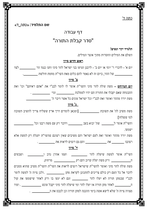 דף עבודה פרשת יתרו – סדר קבלת התורה