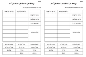 דף עבודה קדשי קדשים וקדשים קלים – ויקרא