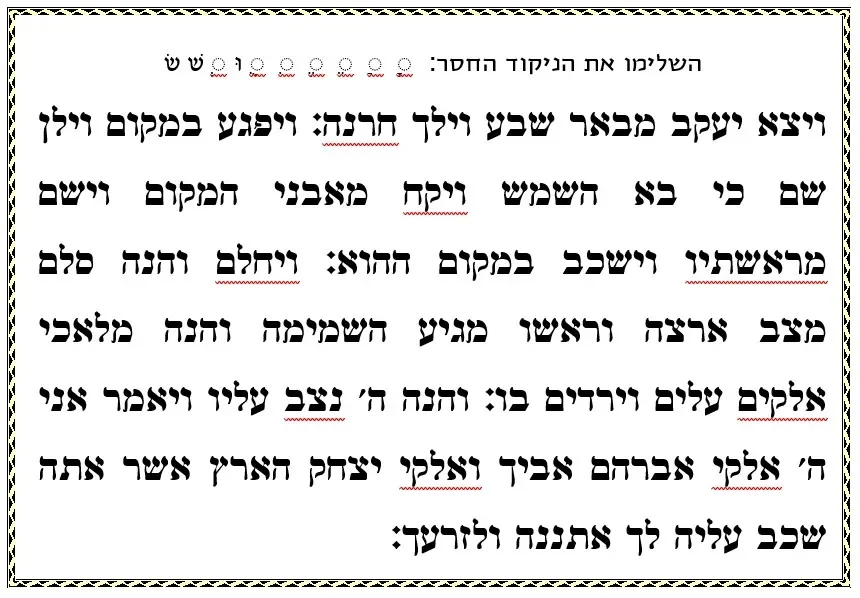 דף עבודה קריאה – השלימו ניקוד – ויצא