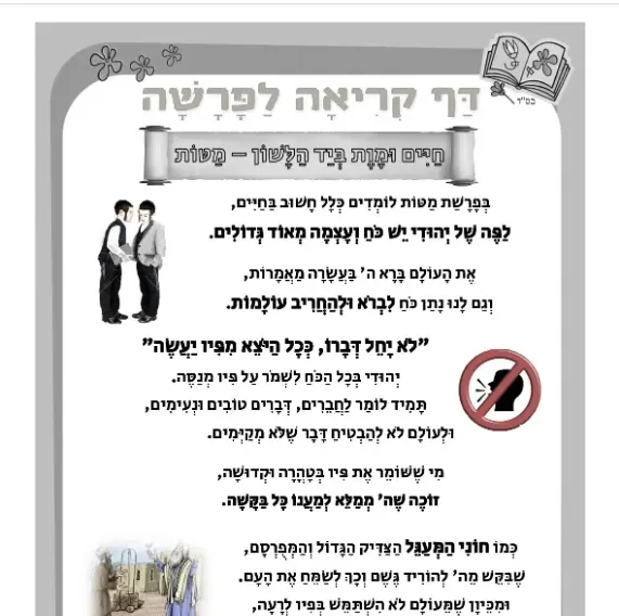 דף קריאה – חיים ומוות ביד הלשון – לפרשת מטות