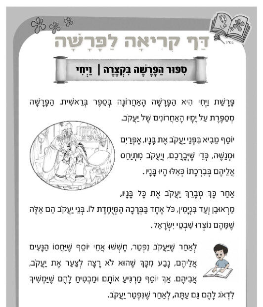 דף קריאה לפרשת ויחי – סיפור הפרשה בקצרה