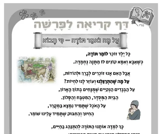 דף קריאה – על מה נאמר תודה – לפרשת כי תבא