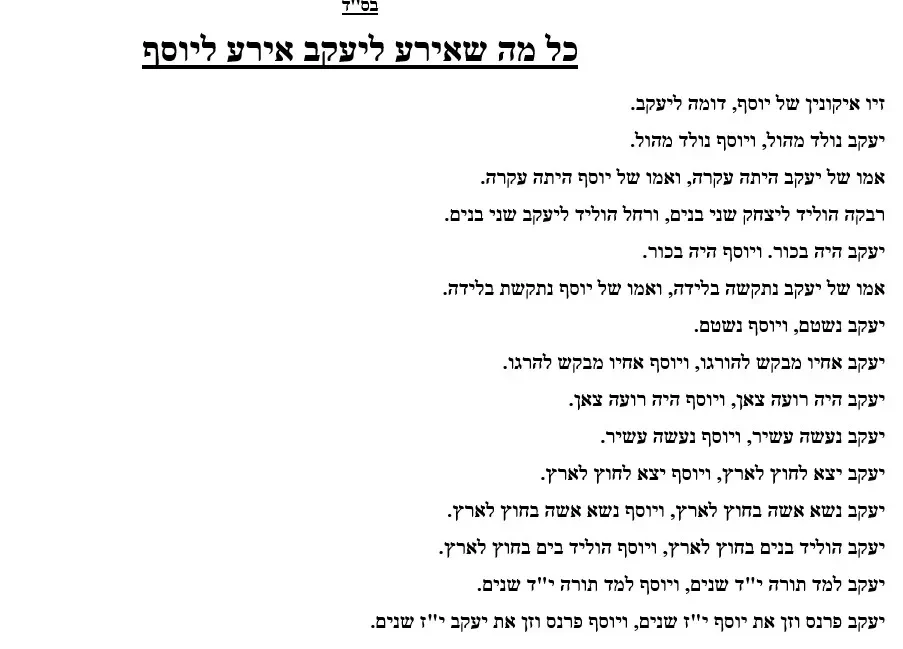 דף תוכן לקריאה – כל מה שאירע ליעקב אירע ליוסף – וישב