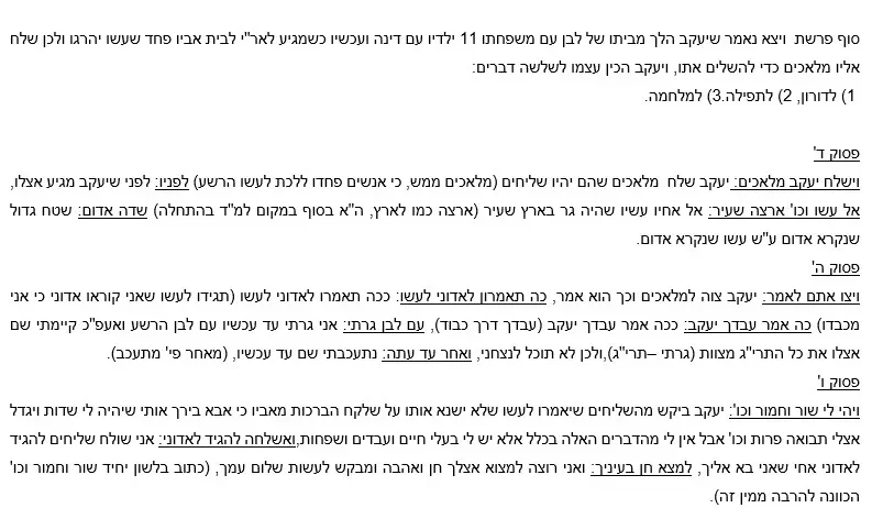 דפי הסבר לכל פסוק עד פסוק יד – וישלח – ת"ת בעלז