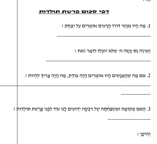 דפי סכום 1 + 2 – ביאורי מילים – פרשת תולדות