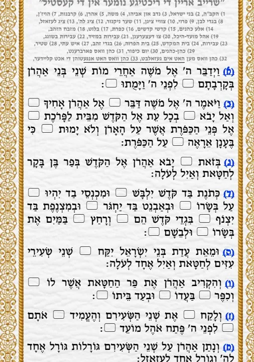 דפי עבודה – הבנת הנקרא משהו מיוחד מסודר ויפה על פרשת אחרי – עד רביעי
