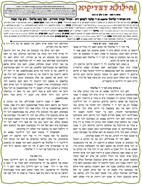 הילולא דצדיקיא – ר אלימלך – כא אדר [א]