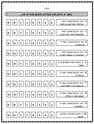 חוברת דף עבודה הבנה – וארא – טסלר