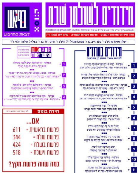חידודים לשולחן שבת לפרשת וישלח (שנת פ"ה)