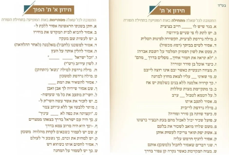 חידון א ב טמונה בפרשה לפרשת כי תצא
