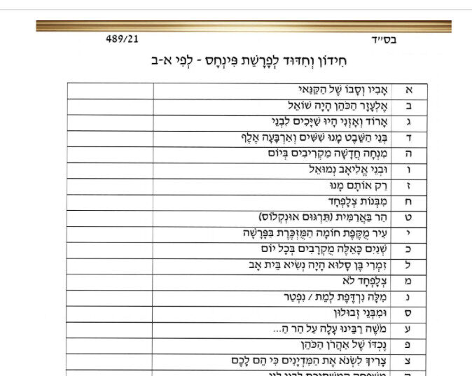 חידון א' ב' פרשת פנחס בלי תשובות (2) – פרחי הדגל
