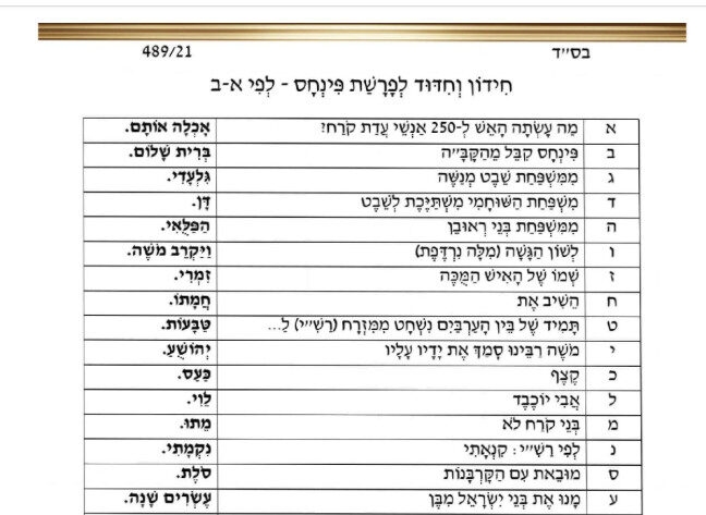 חידון א' ב' פרשת פנחס עם תשובות (1) – פרחי הדגל