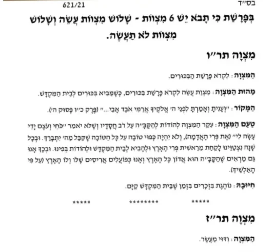 מצוות הפרשה – פרשת כי תבא (פרחי הדגל)