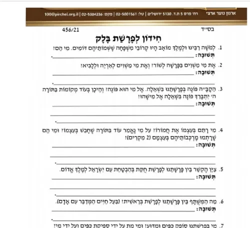 חידון לפרשת בלק בלי תשובות – פרחי הדגל
