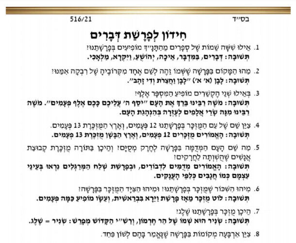 חידות לפרשת דברים עם תשובות – פרחי הדגל