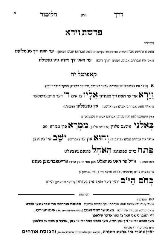 טייטש באידיש – פרשת וירא – חומש פרק י"ח ורש"י עד שני – מאת הוצאות "דרך הלימוד"