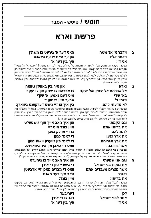 טייטש והסבר וארא על כל הפרשה – אידיש