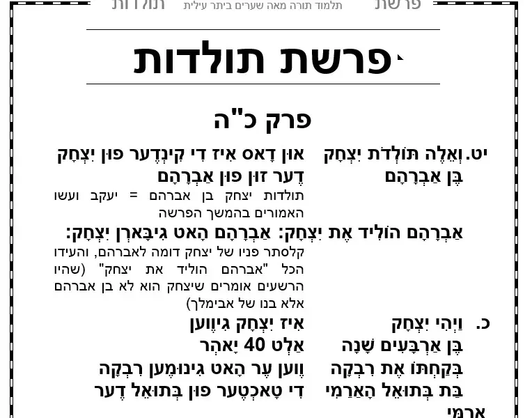 טייטש כל פרשת תולדות – עם הסבר צמוד