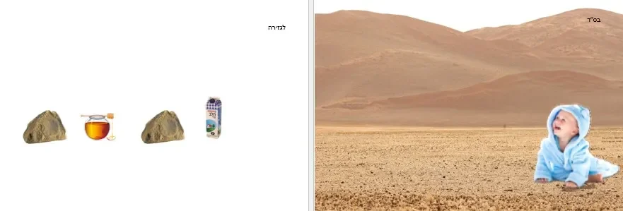 יצירה – גזירה והדבקה – התינוקות קיבלו אבן לאכול חלב ודבש – שמות